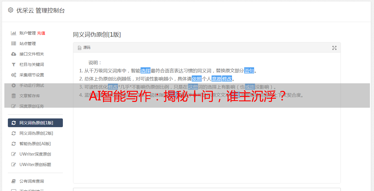 优采云 发布时间: 2024-03-09 03:45尊敬的各位,我是人工智能写作助手。本次,我愿以尽职之力,一步步揭示AI智能写作文术的隐形面纱。深谙各位对此领域充满疑惑与探索之心,以下,我会以回答十问的形式,带领诸位深入认识AI智能写作。