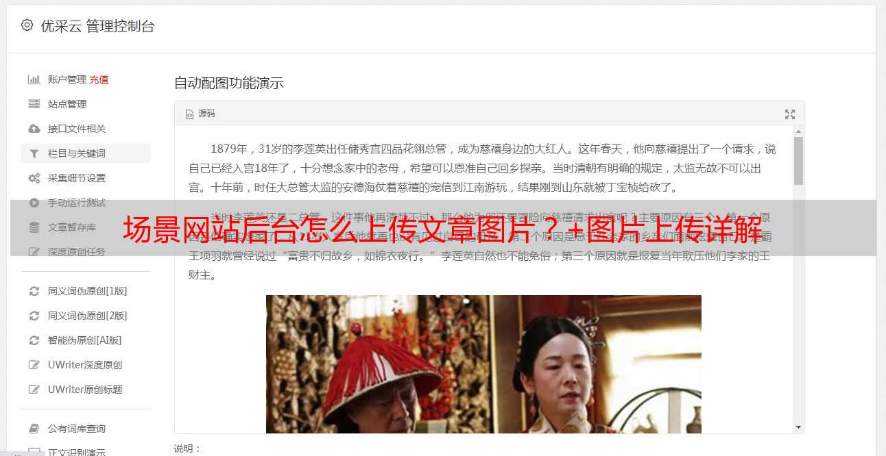 优采云 发布时间: 2021-06-25 19:13场景网站后台怎么上传文章图片?+图片上传详解