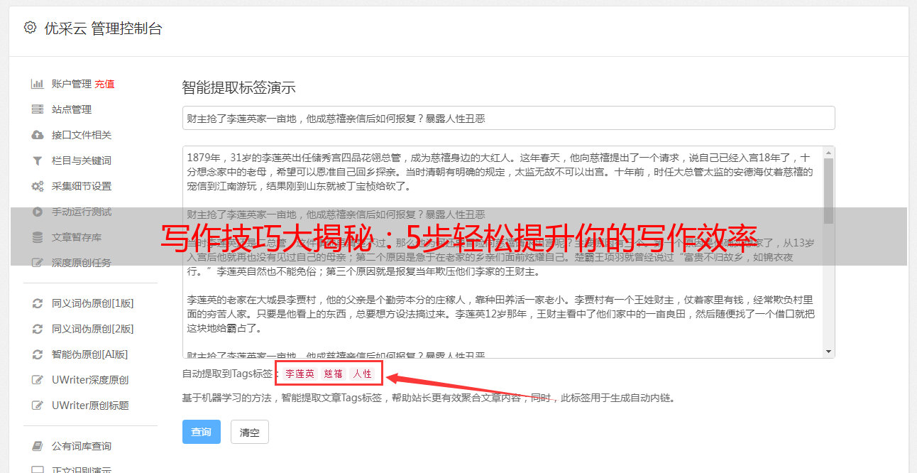 优采云 发布时间: 2024-03-10 23:27在当前繁杂信息环境下,习得写作这门技巧已成为至关重要之任务。无论论文学术人生观察,或工商业务报告总结,我们皆需透过文字传递观点与思虑。然,写作这件事却让许多人为难。如何提升写作效率?以下便为您提供经验分享,期待对您有益。
