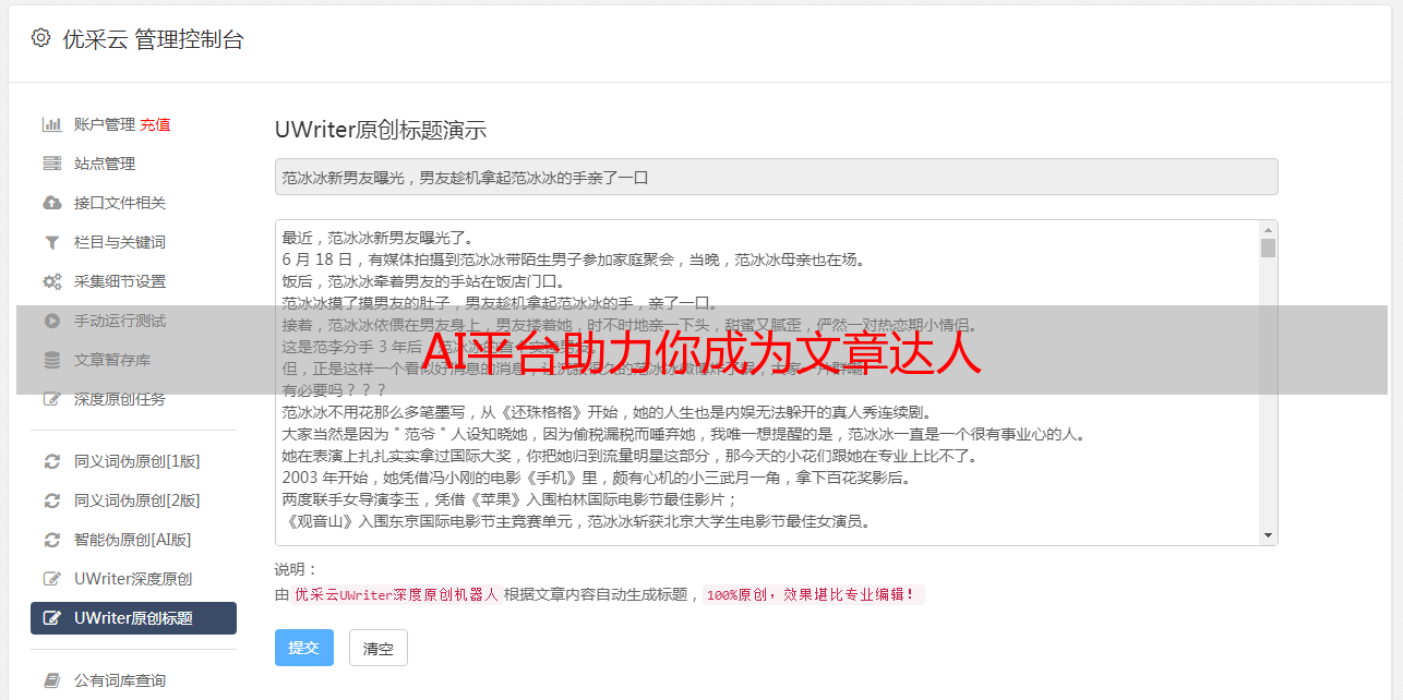 本人工智能网站的文章内容极为丰富,足以满足广大读者的阅读需求。通过您挑选的主题与风格,该 AI 系统将提供各类相关的知识、经验以及事实信息。无论您希望创作出科普性质的文章,亦或是要分享实际有效的技巧,本 AI 网站均能协助您构建出真实且详细的内容。