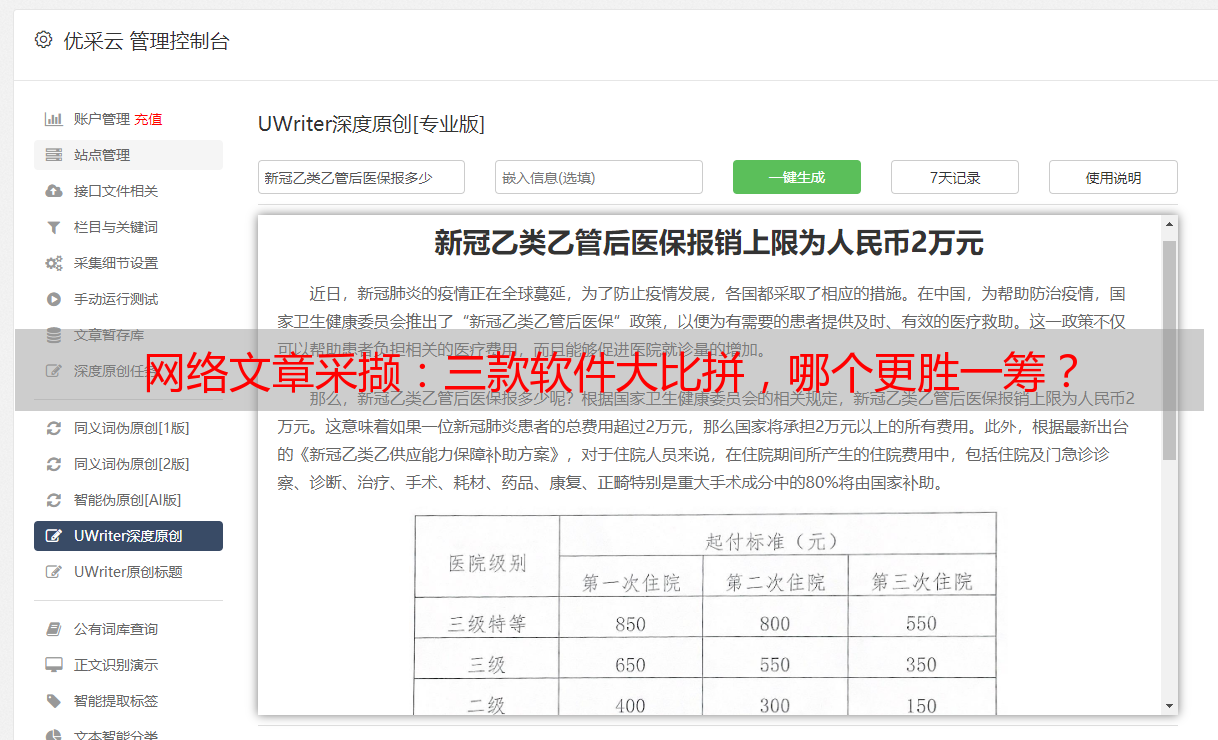 优采云 发布时间: 2024-03-11 09:37网络文章采撷,是互联网时代萃取信息的一大方式。身为网络编辑者,每日需从大量网络文章中发掘、筛选有价值的内容。在此评价环节,我将为各位剖析三类常用网络文章采撷软件,并通过实践应用予以比对其优缺点。