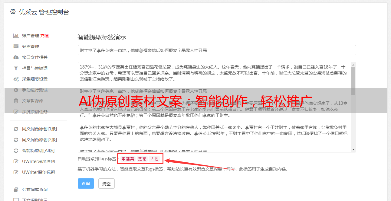 AI伪原创素材文案相较于传统手写文章具备显著优势。首先,其极大程度节约了写作时间与人员投入。借助此类先进技术,大批量文案得以迅速生成,无需再耗费繁重的人力创作。其次,AI伪原创材料文案的一致性及稳定性尤为突出。受算法控制,这些文本表现出稳定的风格及语气,更有利于传递统一的品牌价值和核心信息。更为重要的是,AI伪原创素材文案能依需进行灵活调整与优化,以符合多元化营销环境下的各类推广需求。