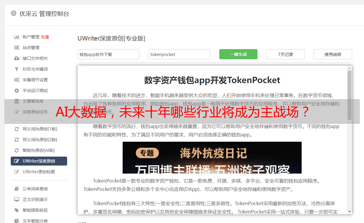 优采云 发布时间: 2024-03-14 12:38伴随着人工智能技术的突飞猛进,大数据作为推动社会进步的原生动力已经崭露头角。在这个充满信息化浪潮的时代,AI智能化大数据正影响着各行各业,引领一场新的科技革命。然而,对于未来十年哪些行业将成为AI智能大数据的主要阵地,我们有何预测?本篇文章试图通过理论解析、知识推断、经验描绘和事实展示等多个层面进行探讨,为您揭示那些蕴藏无限潜能的未来产业轮廓。