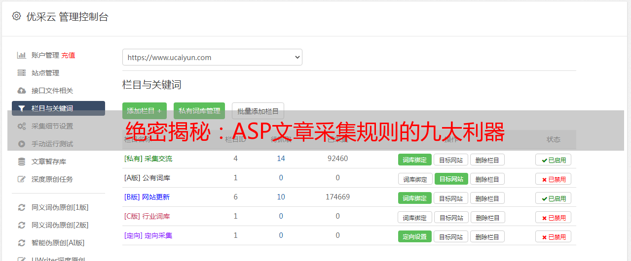 此尊荣称为"ASP文章采集规则"的技术规矩,其主旨在于,通过对文章采集及其处理过程进行自动化管理与改进,以期提升采集质量和效率达到更高境界。此规矩汇聚众多实用功能及详细操作手册。
