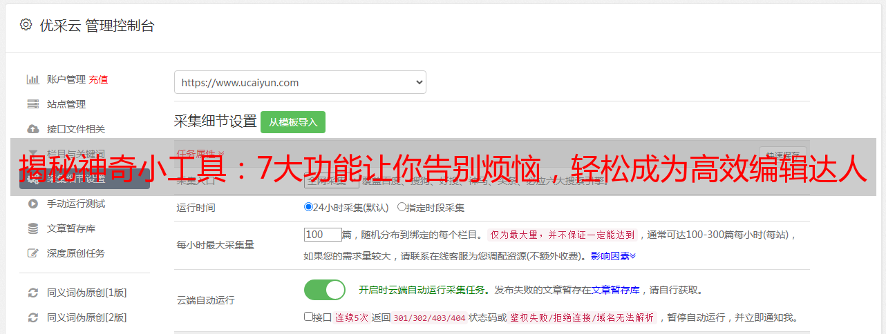 优采云 发布时间: 2024-03-14 17:44在这个快步调的社会环境中,我们始终寻求高效简便的生活方式。今日,我向您推荐一款神奇的小工具,其将对您的生活产生深远影响!无需过多解释,让我们共同理解并探索它所拥有的七大功能!