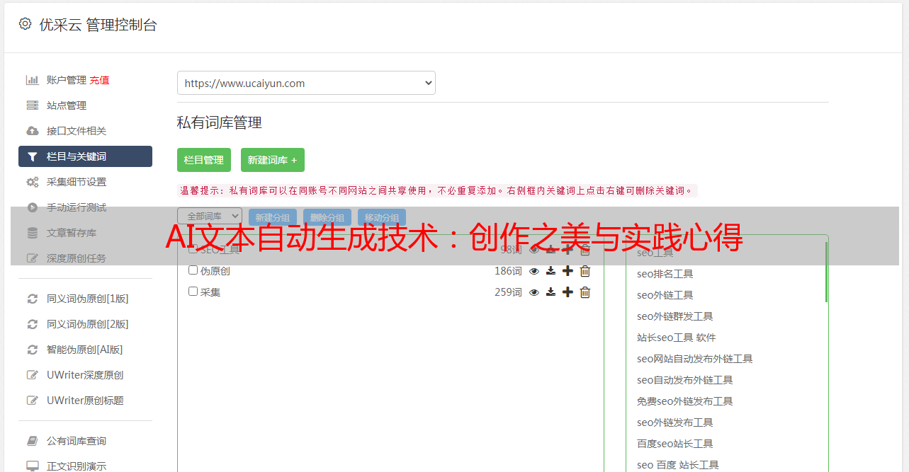 优采云 发布时间: 2024-03-14 19:25身为热衷于文字创作之人,近期我尝试使用了AI文本自动生成技术,经亲身试炼,深深感受到其独特之美。本篇文章旨在分享我对此项产品的实践心得,为有志于此领域者提供参考与借鉴。