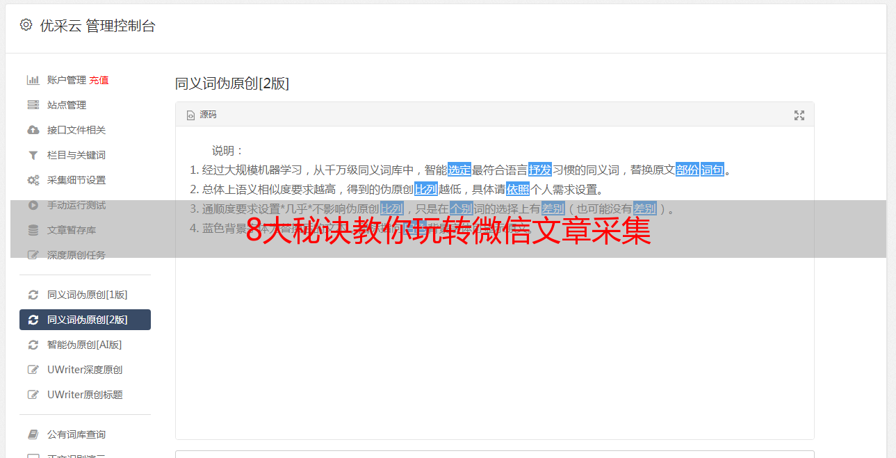 优采云 发布时间: 2024-03-14 22:40近日,本人对利用微信平台采集文章进行了亲身实践,特此将经验心得与诸位共享。在此过程中,我深入学习并掌握了一些与此相关的实用技能及须知要领。现列举八大要点,以飨读者。