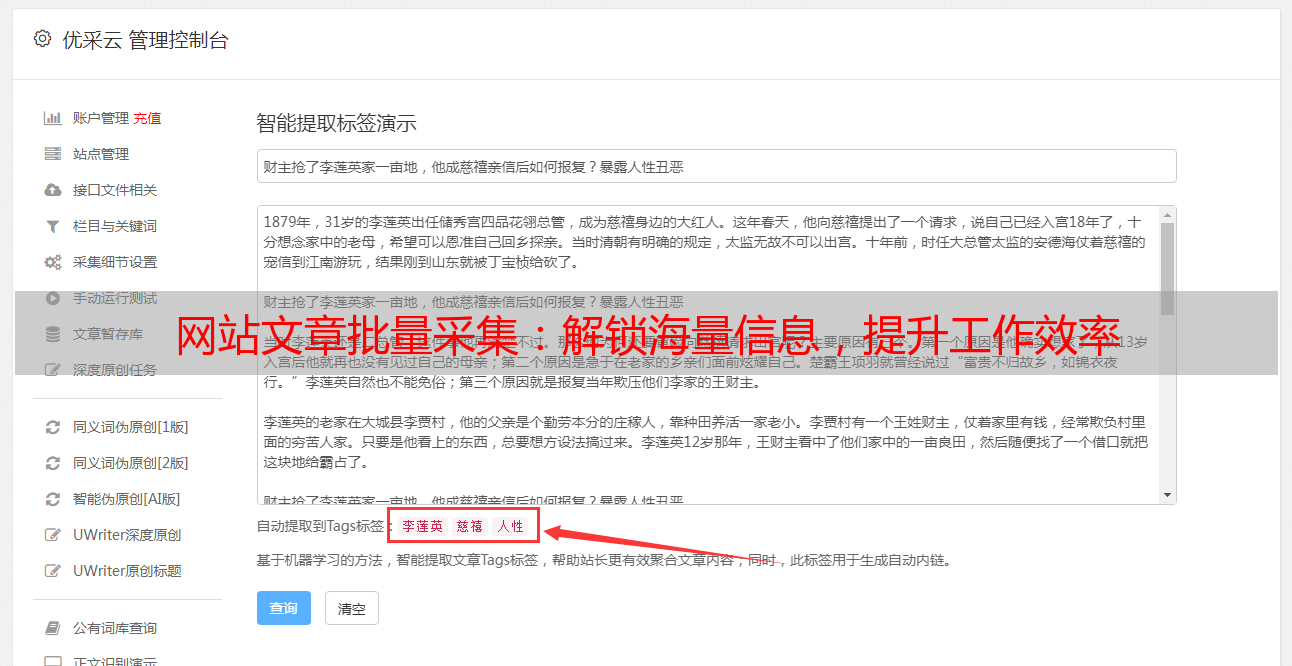 优采云 发布时间: 2024-03-14 22:551.什么是网站文章批量采集?