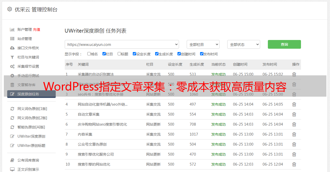 采用WordPress的文章采集策略具有明显优势。此项服务可为您节约宝贵时间和精力,无需再亲手选取和发布新文章;同时带来丰富多样的博客内容,吸引更广泛的读者群体;以及大幅提升博客在网络中的排名和知名度,使得更多人对您的博客产生兴趣。
