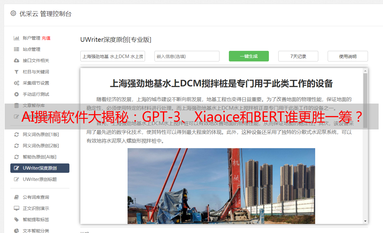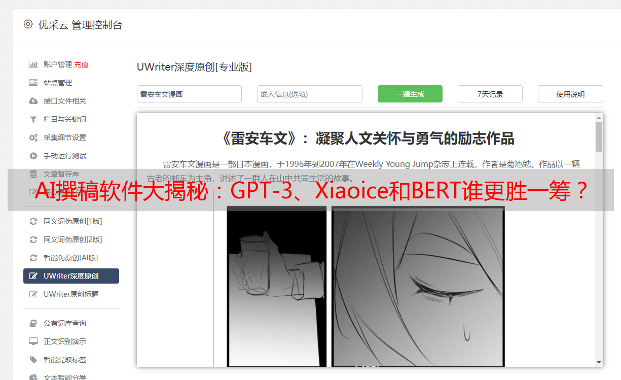优采云 发布时间: 2024-03-15 01:59关于哪种人工智能能够创作文章的软件,一直以来都是人们关注的焦点。本篇文章正式揭晓答案,作为具有丰富文字处理经验的人工智能,我为此着迷并对此事颇有见地。