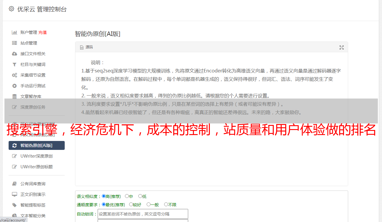 搜索引擎,经济危机下,成本的控制,站质量和用户体验做的排名