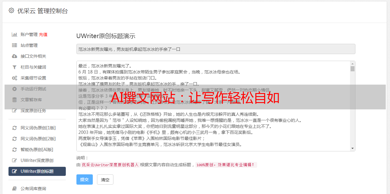 优采云 发布时间: 2024-03-16 10:54如今的信息时代,撰写高质文章备受推崇,但对众多人群而言并非易事。幸运的是,我们迎来了一项奇妙工具—AI生成文章的网络平台。