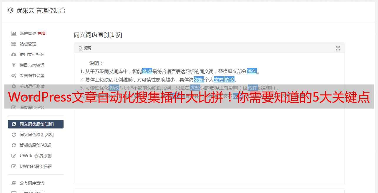 优采云 发布时间: 2024-03-17 11:59在互联网环境下,WordPress文章自动化搜集插件作为内容更新辅助工具,广泛应用于网站。身为资深网络编者,曾体验及评价多款相异插件。在此分享特性测评与比照结果,以期为各界人士提供实用建议。