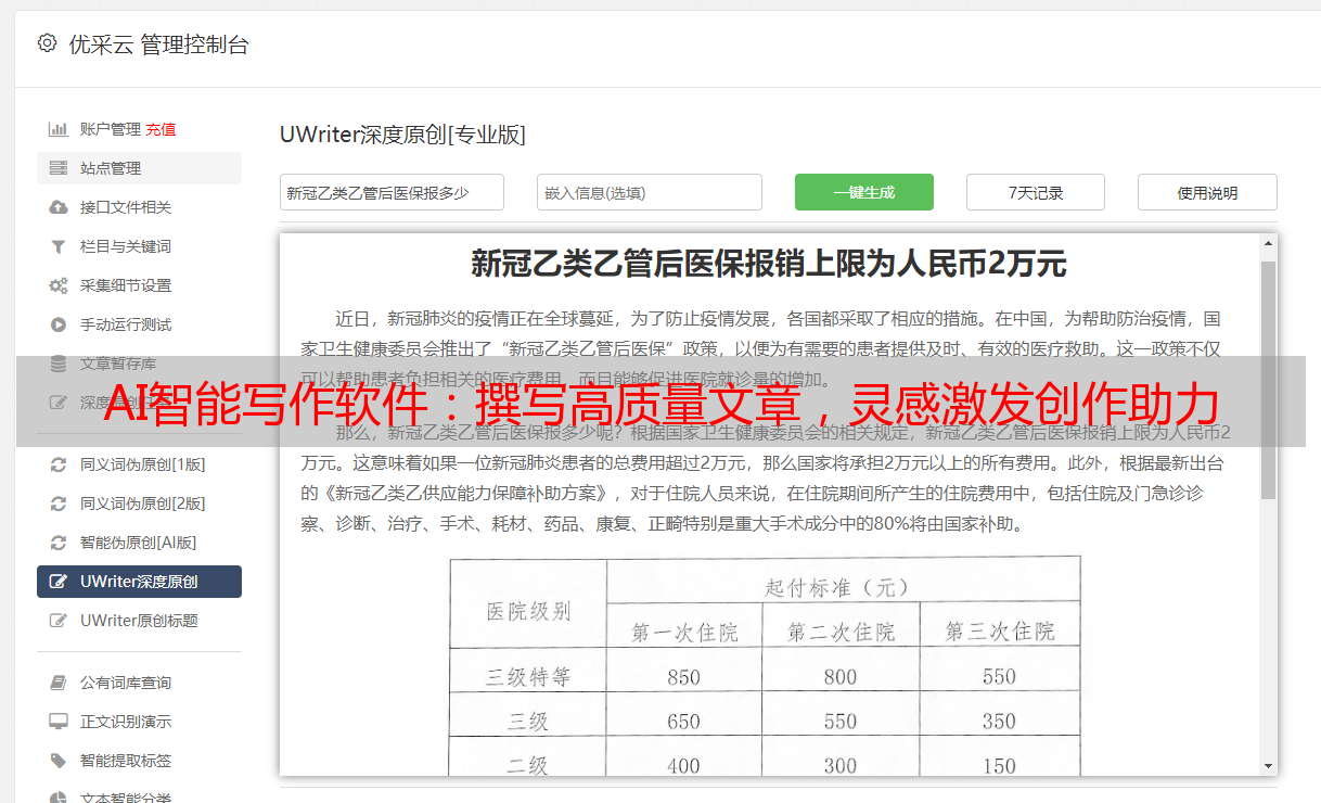 优采云 发布时间: 2024-03-17 15:31身为资深作家,我以文字为生多年。近闻一款AI智能写作文章算法软件引发关注,据称可助力撰写高质量文章,遂怀好奇之心试用之。