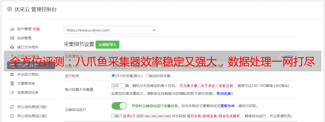 优采云 发布时间: 2024-03-25 05:30本文以八爪鱼采集器为评测对象,着重于效率与稳定性两大核心指标,以便供广大读者依据自身需求做出明智之选。
