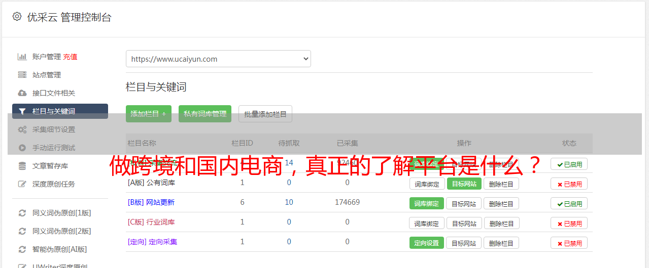 做跨境电商和国内电商,我们最先从传统外贸做起。这么多年过去了,其实网上销售的整套运营理念还是有很多研究的。真的,做了这么久,你会发现平台其实都差不多,或者说是可以互通的。做了一个平台之后,再用同样的思路和思路去搭建另一个平台,大体上值得借鉴!