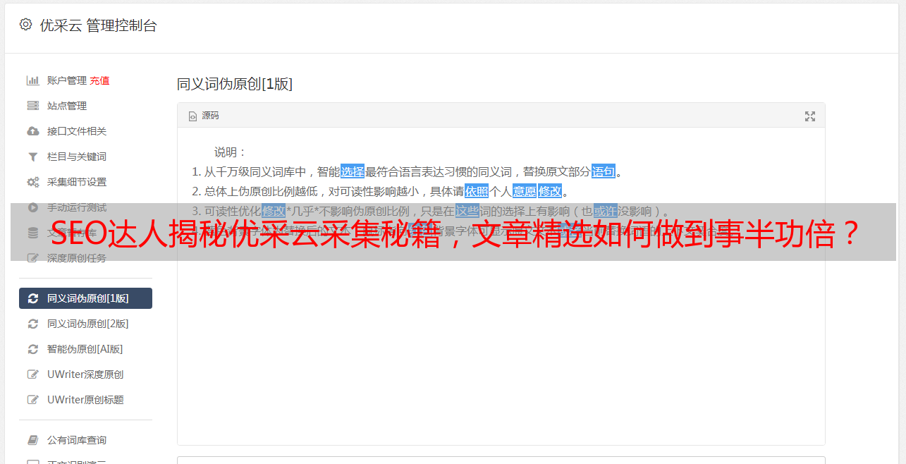 SEO达人揭秘优采云采集秘籍,文章精选如何做到事半功倍?