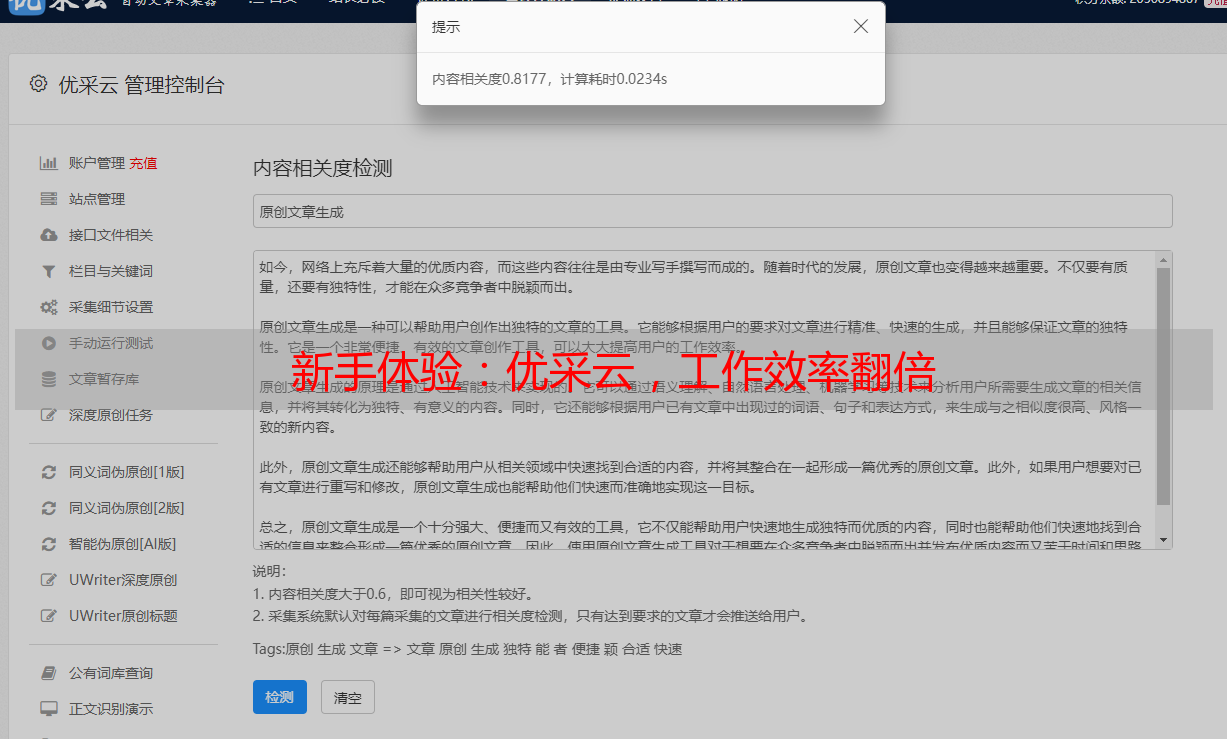 实用、便捷的优采云极大程度上提升了工作效率和乐趣。其直观易懂的界面设计及强大的团队协同功能,显著减轻了工作负担并拓宽了工作广度。若您正面临工作效率不高的困扰,强烈建议您尝试优采云。期待它能助您一臂之力,顺利完成各项任务。