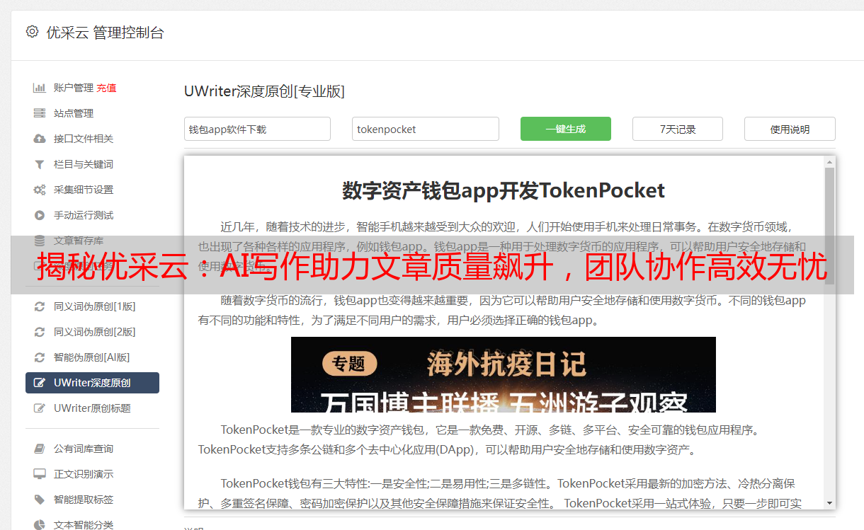 揭秘优采云:AI写作助力文章质量飙升,团队协作高效无忧