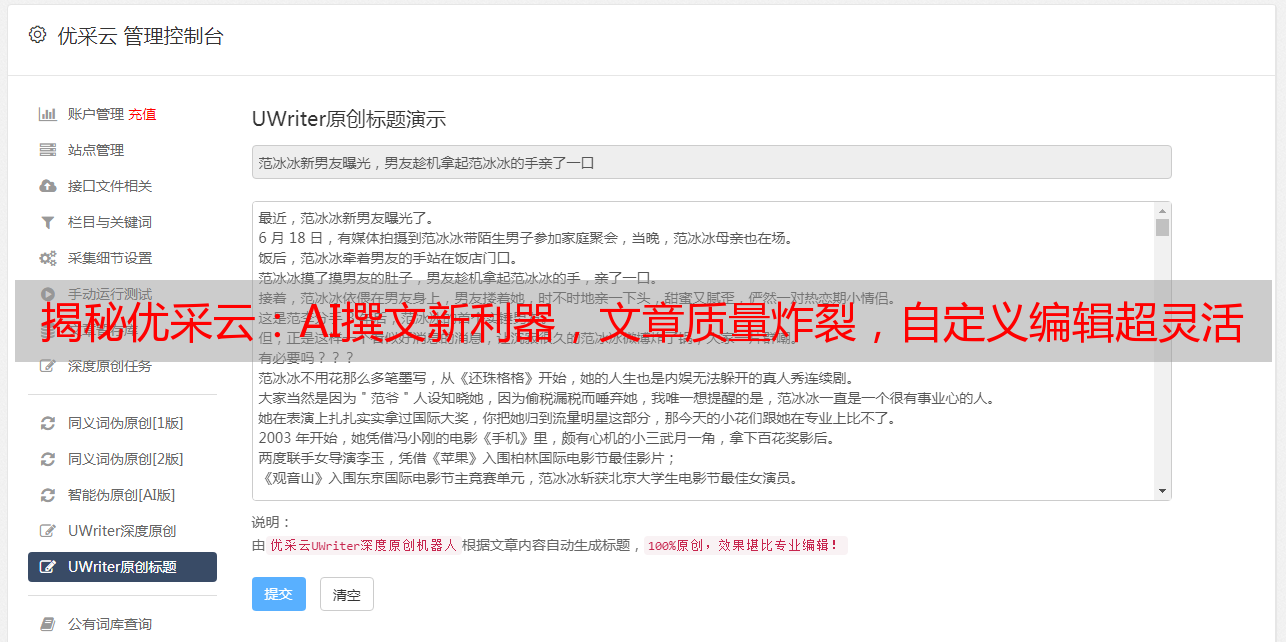 揭秘优采云:AI撰文新利器,文章质量炸裂,自定义编辑超灵活