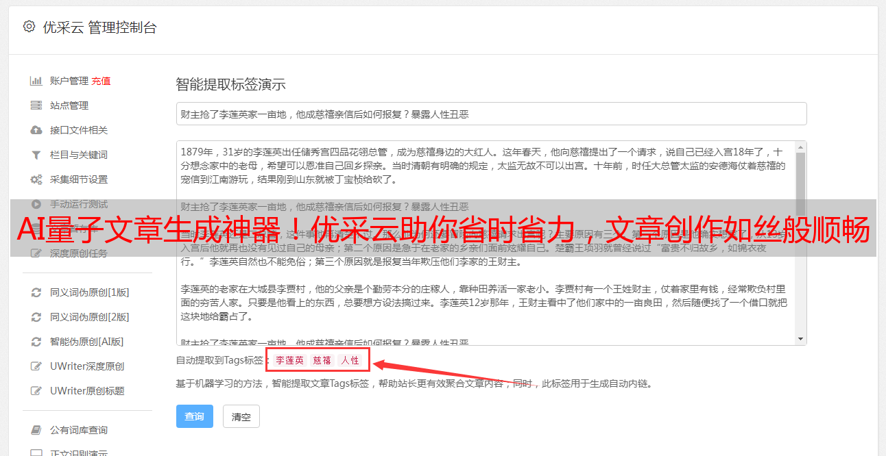 AI量子文章生成神器!优采云助你省时省力,文章创作如丝般顺畅