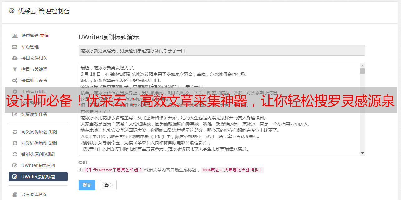 设计师必备!优采云:高效文章采集神器,让你轻松搜罗灵感源泉