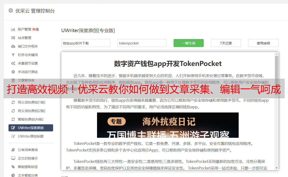 打造高效视频!优采云教你如何做到文章采集、编辑一气呵成