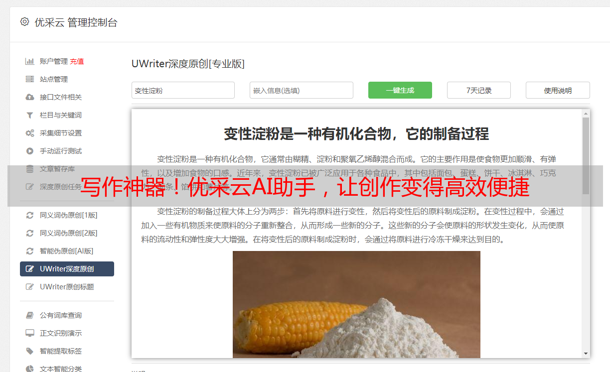优采云 发布时间: 2024-04-02 02:26对爱好读书和文字创造者而言,常面临着大量且紧急的文稿创作。此时智能写作助手的出现则为我们带来了更为高效便捷的解决方式。本文着重介绍优采云——一款智能写作平台,并提供使用建议,助您充分发挥此款工具提高写作效率。