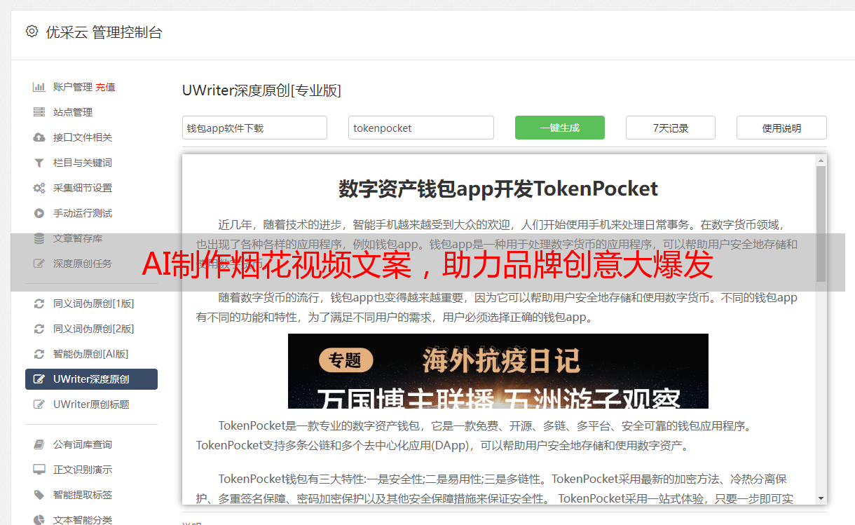 优采云 发布时间: 2024-04-02 05:381. AI制作烟花视频文案的背景