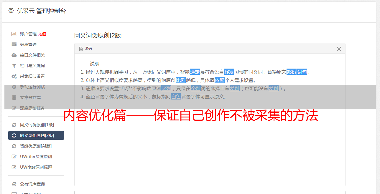 2、图片水印处理,采集工具无法识别图片并过滤。 原创文章的图片可以使用水印。就算采集不见了,他要处理,也得重新编辑一下。