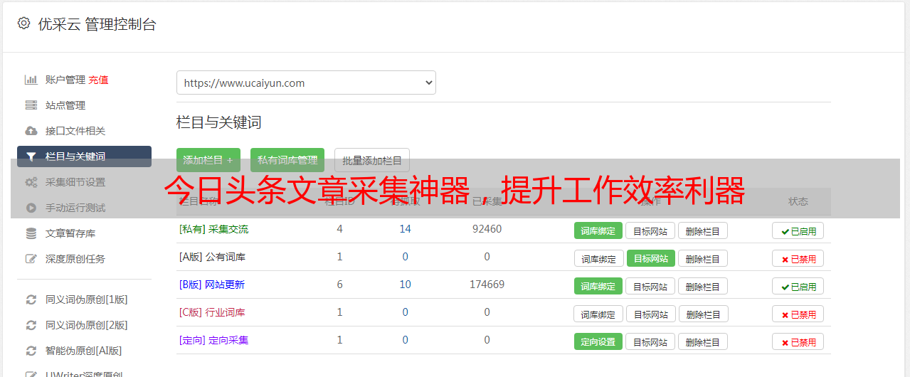 优采云是一款专业的网络内容采集工具,旨在帮助用户快速、高效地采集各类网络信息。其强大的定制化功能和智能化操作,使得用户可以轻松实现对目标网站的数据抓取和处理。对于从事内容创作、市场调研等工作的人员来说,优采云是一个不可或缺的利器。