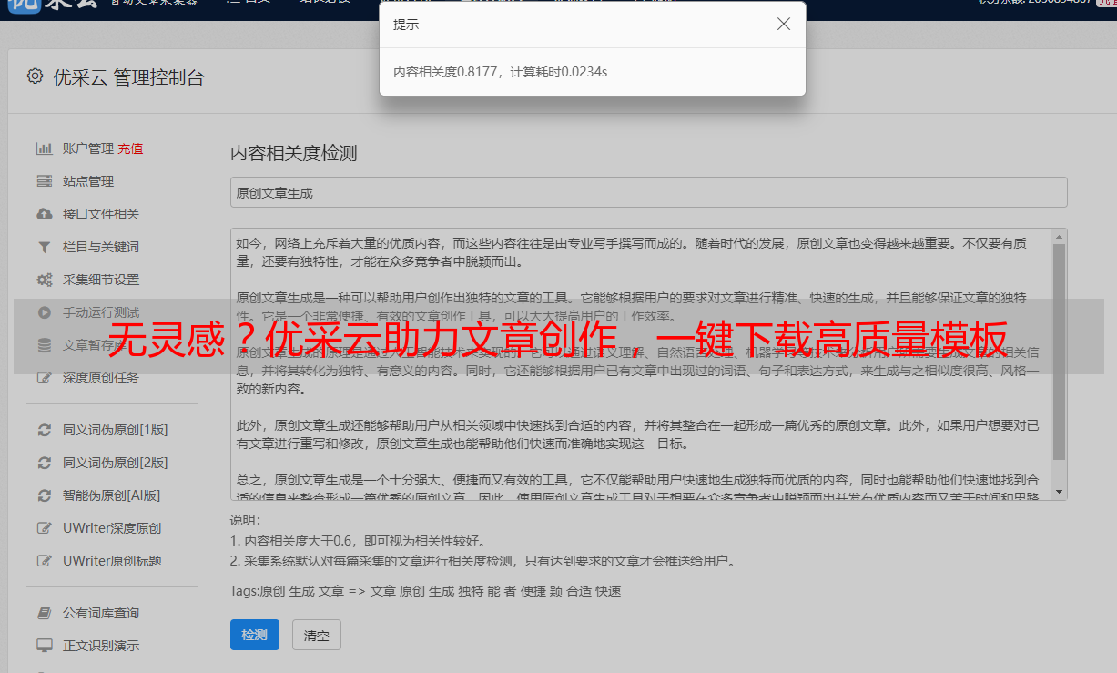无灵感?优采云助力文章创作,一键下载高质量模板
