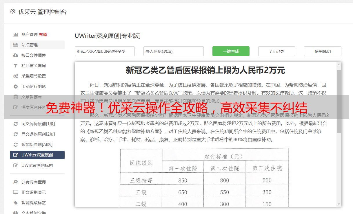 优采云 发布时间: 2024-04-03 15:59作为一款免费文章采集软件,优采云在业内的关注度极高。本篇文章将详述其操作步骤及实用性建议,以协助广大读者更加高效地运用此工具。