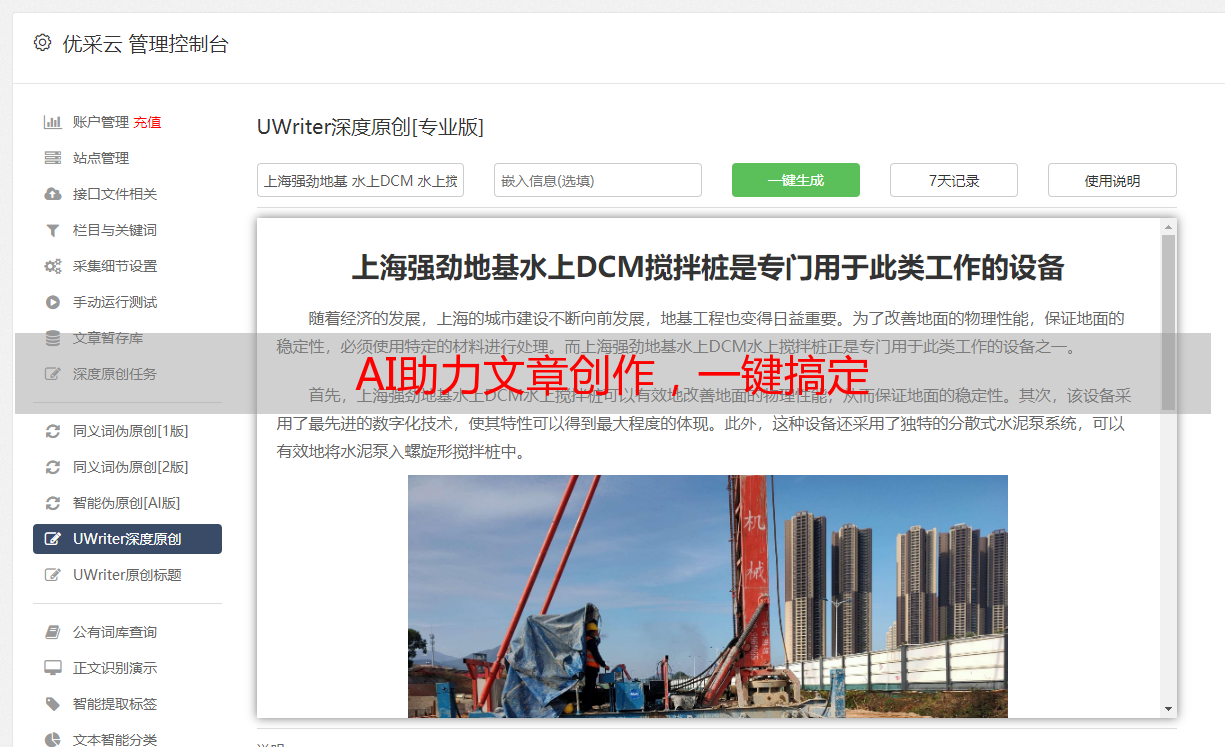 优采云,一套先进的AI文章创作系统,致力于协助使用者以简便且有效率的方式进行文章写作。运用人工智慧技术,优采云能进一步满足用户对文章内容的要求,极力节省用户的时间与精神成本。优采云操作界面简洁明了,性能卓越,深得用户好评。使用前,用户应熟悉其主要功能及操作步骤,以便更充分地发挥此工具的效用。