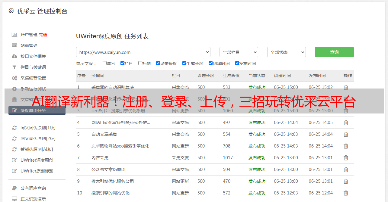 AI翻译新利器!注册、登录、上传,三招玩转优采云平台