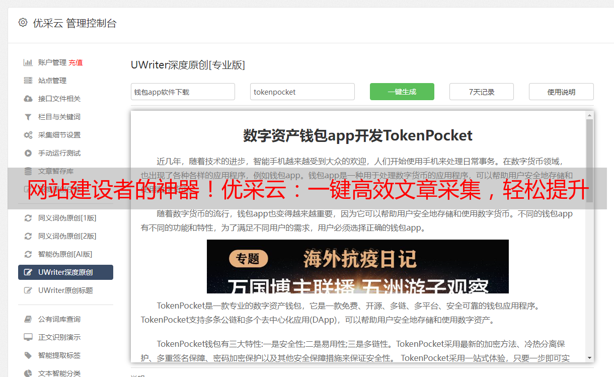 网站建设者的神器!优采云:一键高效文章采集,轻松提升更新速度