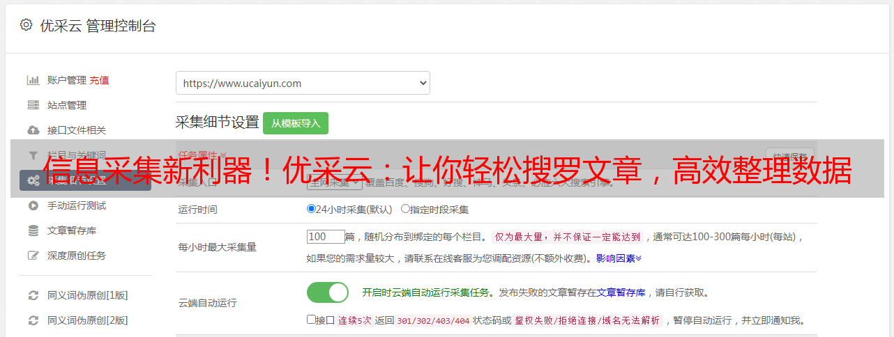 优采云是专精于文章采集领域的优质工具,其具备多元化实用性特点,致力于向广大用户提供一体化全面服务。主要功能涵盖: