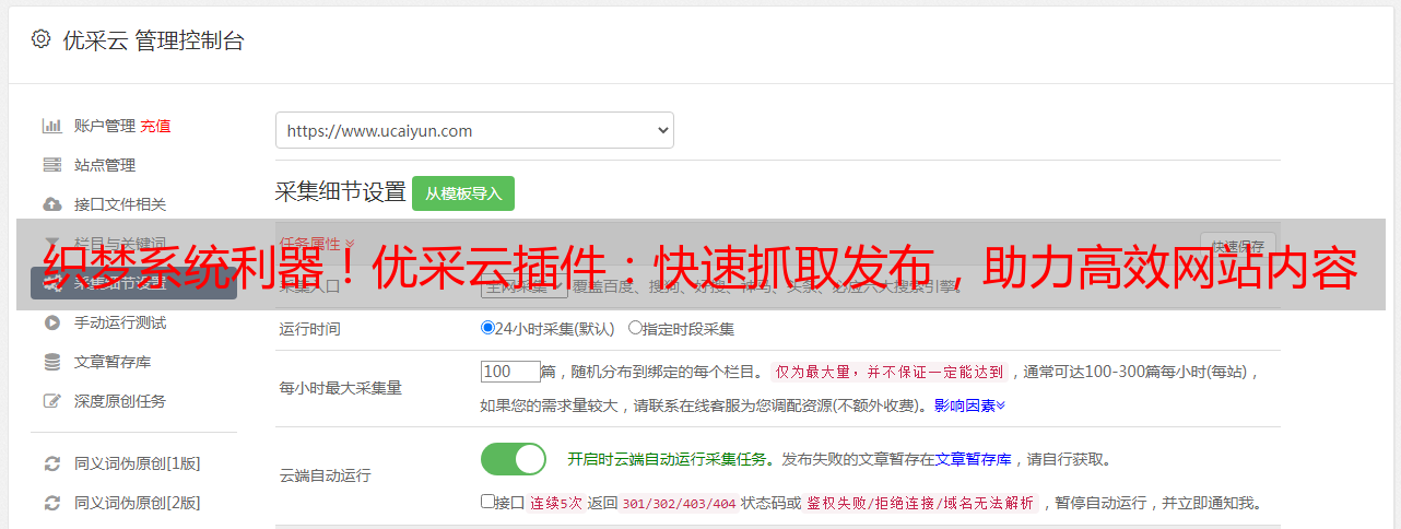 织梦系统利器!优采云插件:快速抓取发布,助力高效网站内容生成