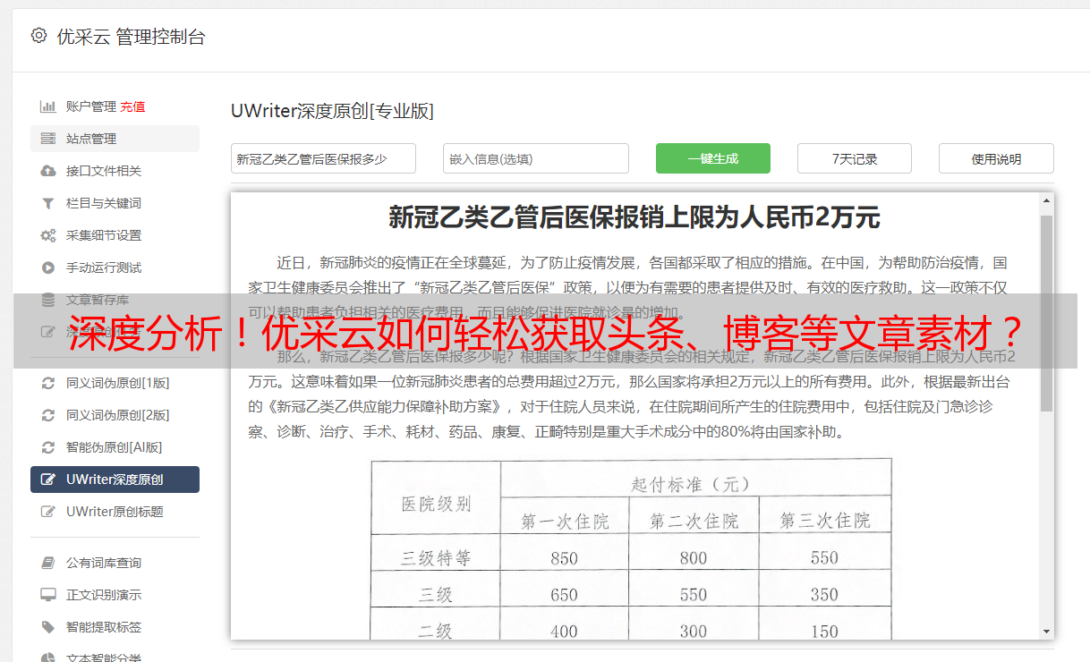 深度分析!优采云如何轻松获取头条、博客等文章素材?