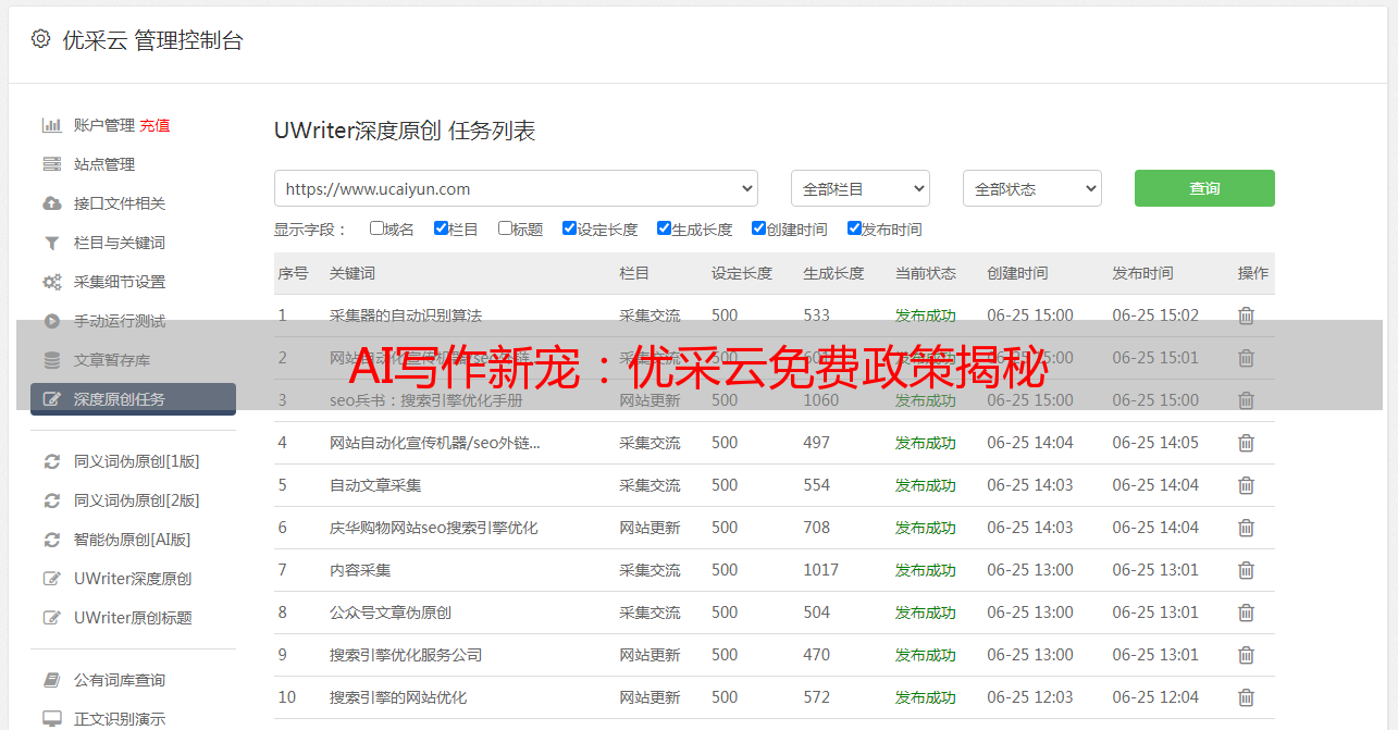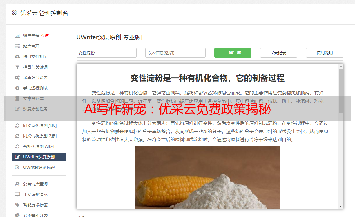 优采云 发布时间: 2024-04-07 13:46鉴于人工智能技术发展带来便利,智能化写作网址应运而生。这是由信息爆炸催生的时代需求所决定的。为此,优采云作为一款知名AI写作系统,推出免费使用政策,带来了巨大方便。本篇文章将会深入探讨如何有效运用并共享优采云提供的手段以应对这些需求。