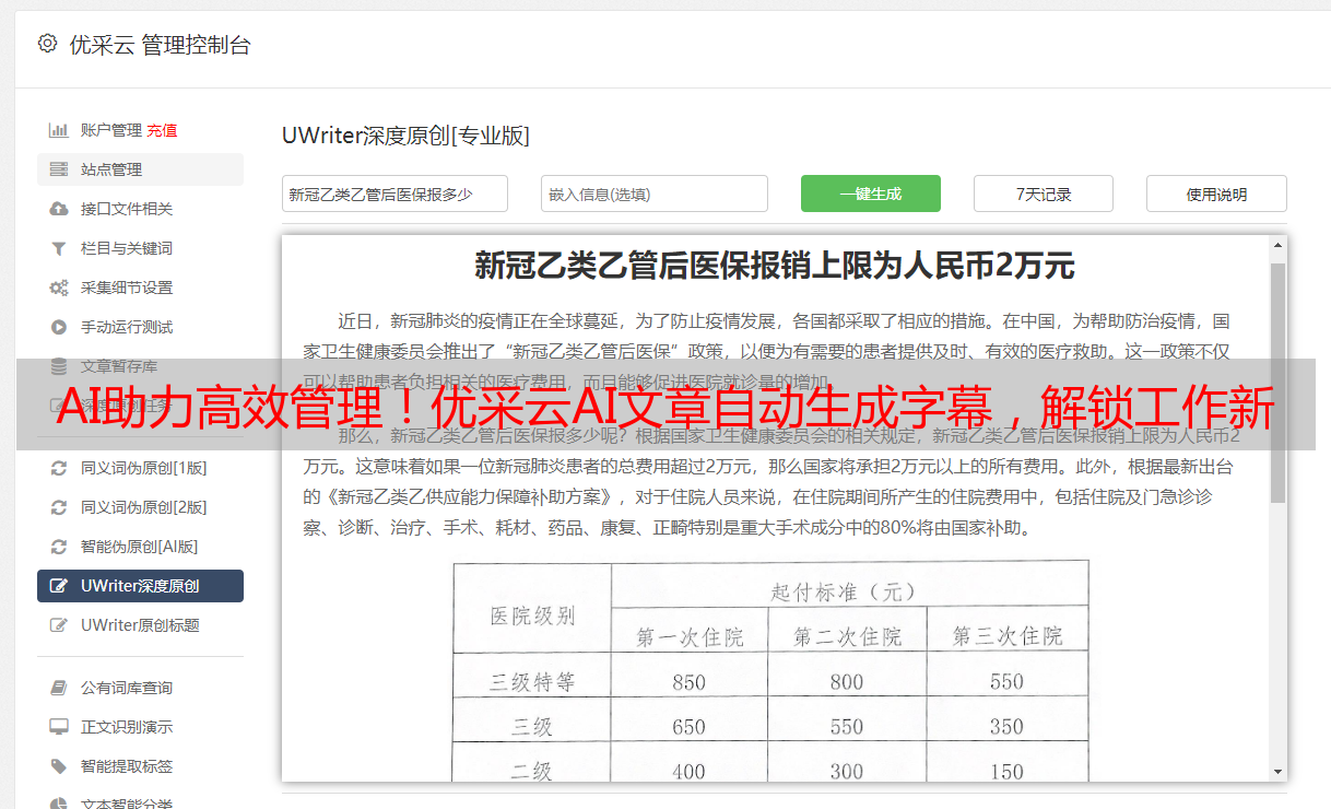 AI助力高效管理!优采云AI文章自动生成字幕,解锁工作新境界