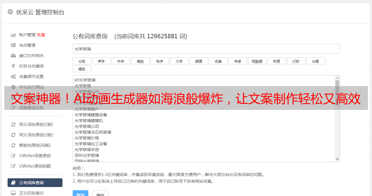 精通运作技术:初次接触优采云文案AI*敏*感*词**敏*感*词*时,用户需投入适量时间熟悉操控界面与基本功能。通过不断实践操作及尝试功能运用,可充分发掘该制作神器的创作空间。
