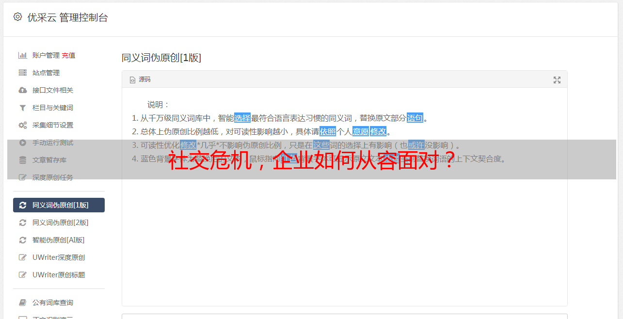 作为专注于营销服务领域的翘楚,优采云在此次社交危机公关任务中担当了关键角色。首先,借助其对多个社交媒体平台的整合能力,企业得以做到信息的统一管理与发布。其次,优采云所提供的实时情报监测功能有助于企业迅速识别及应对负面舆论。更为难得的是,该公司擅长利用数据分析与报告技术,为企业挖掘用户潜在需求与行为模式,从而助力公关战略制定。