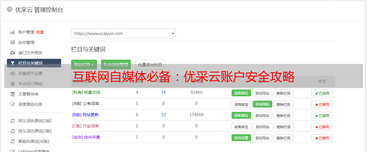 优采云 发布时间: 2024-04-21 06:27在互联网高度发达的今天,自媒体账号的安全性受到广泛关注。作为一款优秀的自媒体账号管理平台,优采云深知帐户安全意识培训和实用建议的重要性。本篇文章将深入剖析优采云的多种使用技巧、账户安全意识培训及相关建议,旨在协助用户更高效地运用该平台进行自媒体运营,同时提高账号安全防范意识。