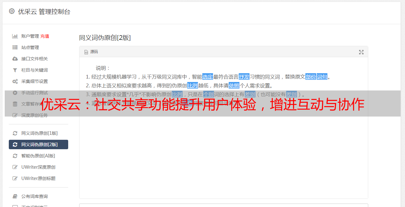 凭借上述特性,优采云社交分享功能融合能为用户带来更为便捷、个性的分享感受,同时提升其参与度与满意度。