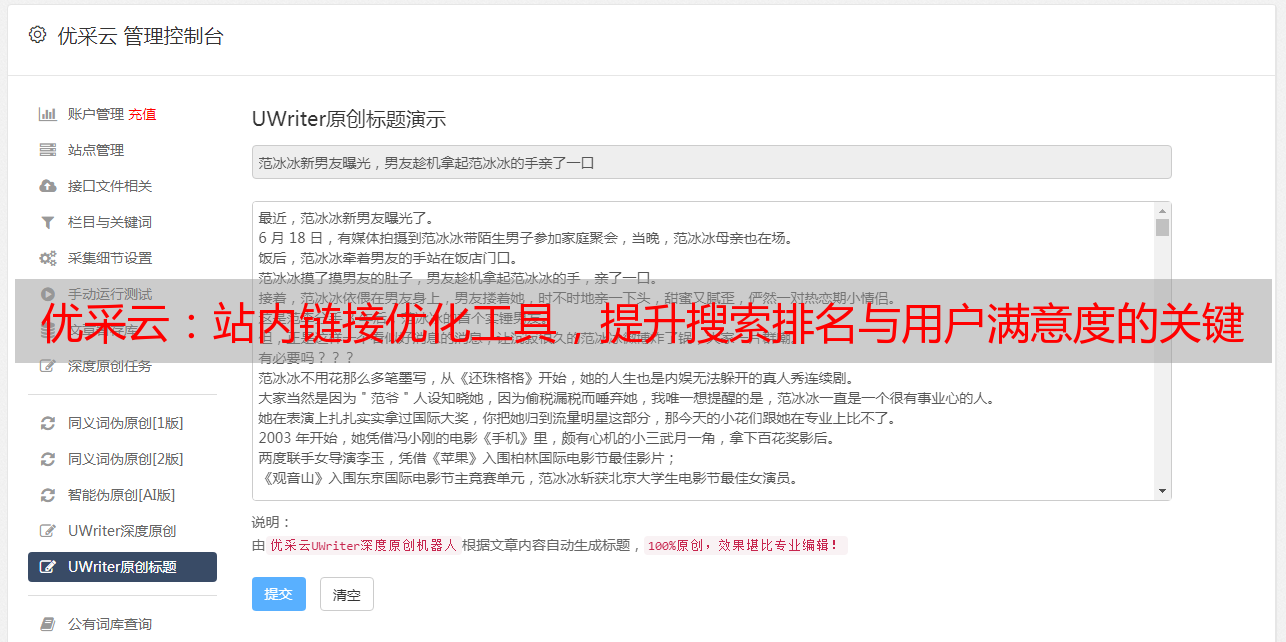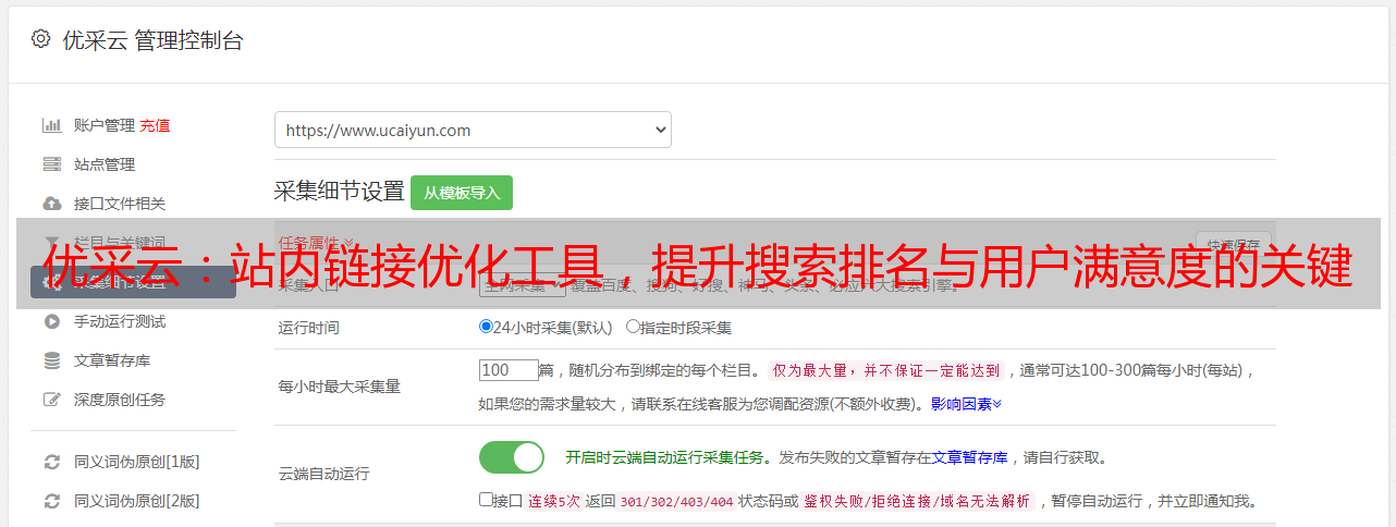 优采云提供了一系列强大的站内链接优化功能,包括:
