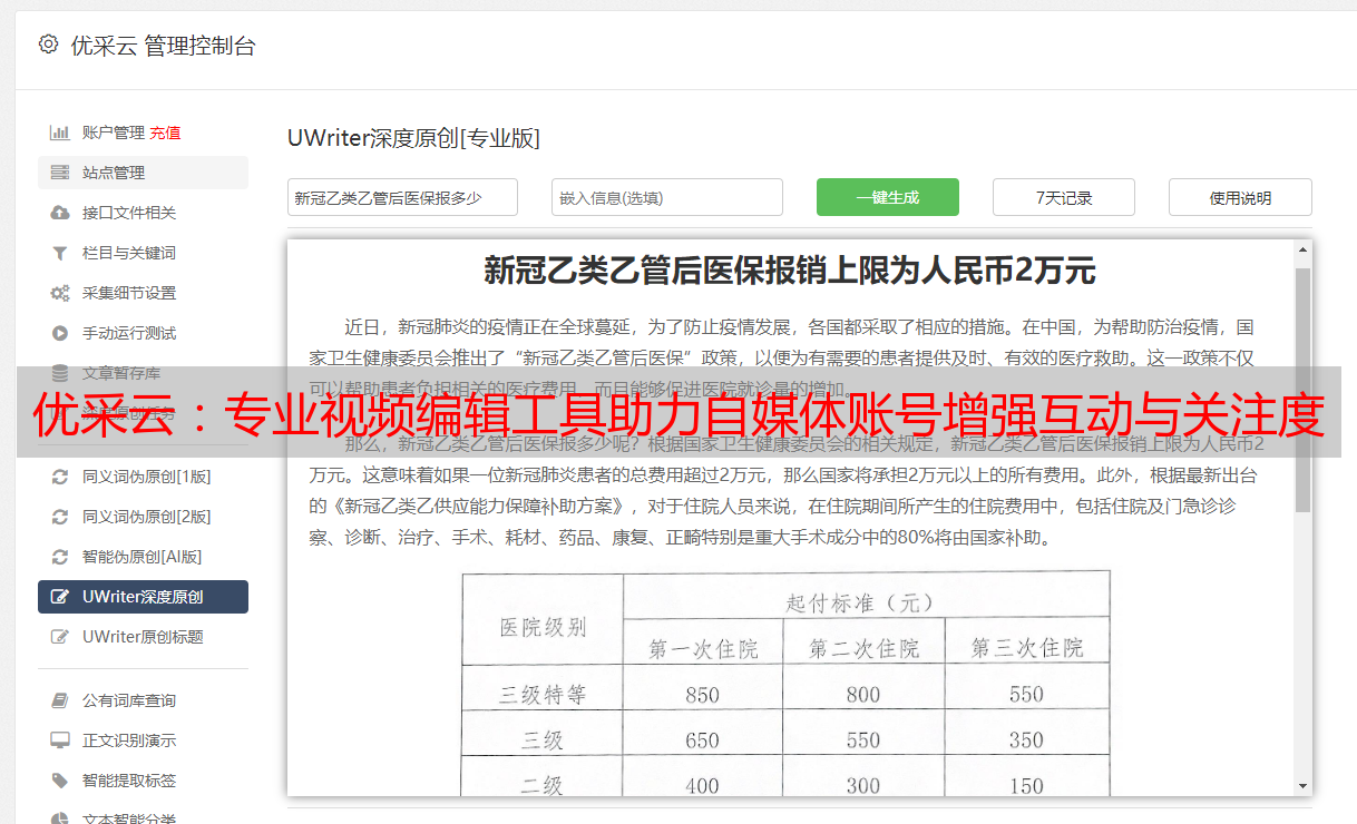 优采云:专业视频编辑工具助力自媒体账号增强互动与关注度
