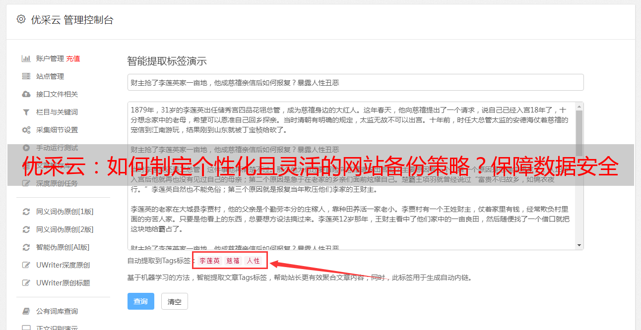 本文分析并推荐优采云网站备份工具的自定义备份策略。期待与您深入讨论和交流。