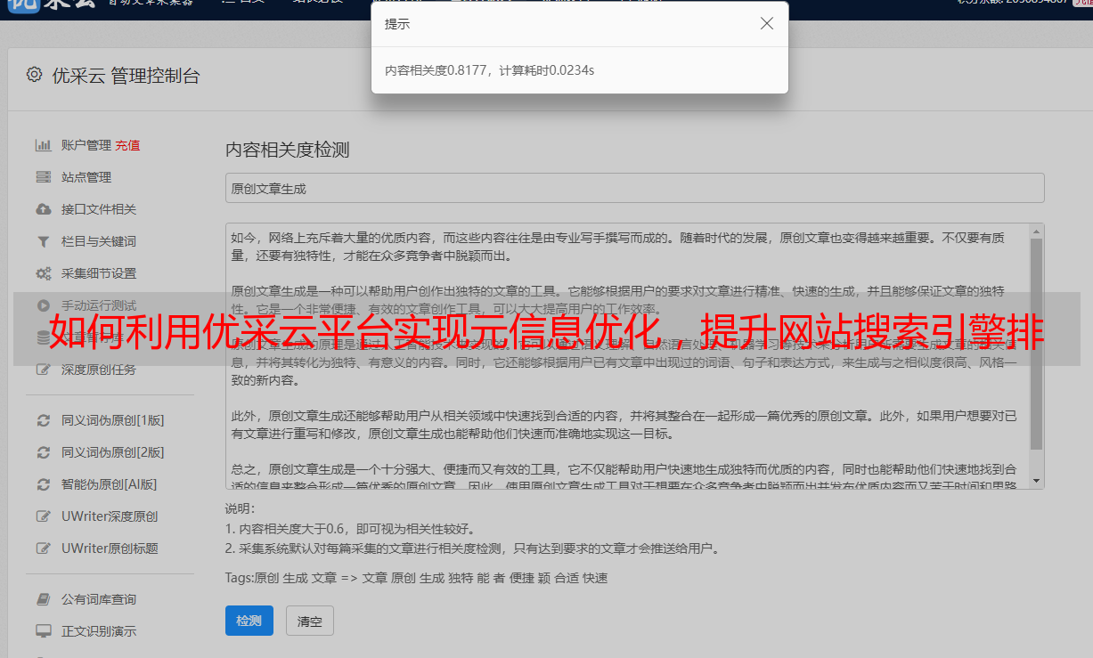 如何利用优采云平台实现元信息优化,提升网站搜索引擎排名与展现度