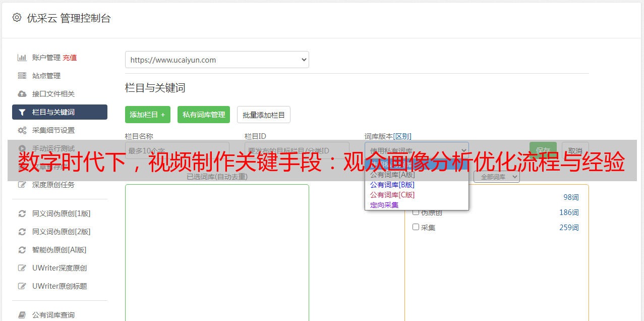 为使优采云的观众人像分析功能得以充分运用,请采用下列具体策略: